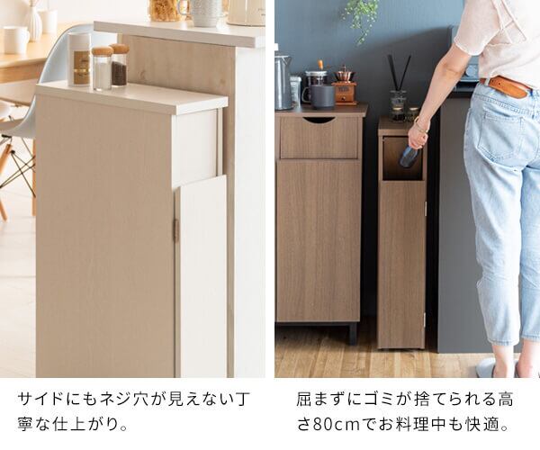 スリムゴミ箱 17cm幅 ホワイト ナチュラル ブラウン 白 茶色 ダストボックス 隙間設置 キャスター付き プッシュ扉式 幅17cm 奥行44.5cm 高さ80cm おすすめ おしゃれ 北欧 モダン スタイリッシュ コンパクト 省スペース 木目調 スリムタイプ ごみ入れ くずかご くず入れ