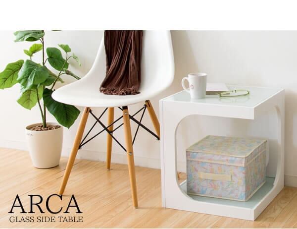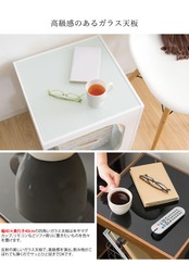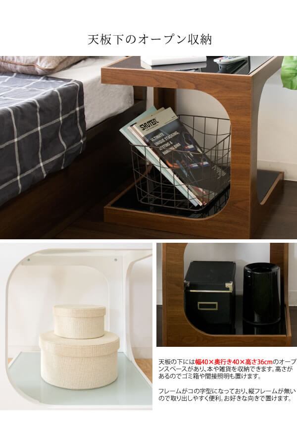ガラス天板の下にはおしゃれなオープンスペースがあり、高さのあるものも収納できるので、ソファやベッドサイドでの使用におすすめのサイドテーブルです。
