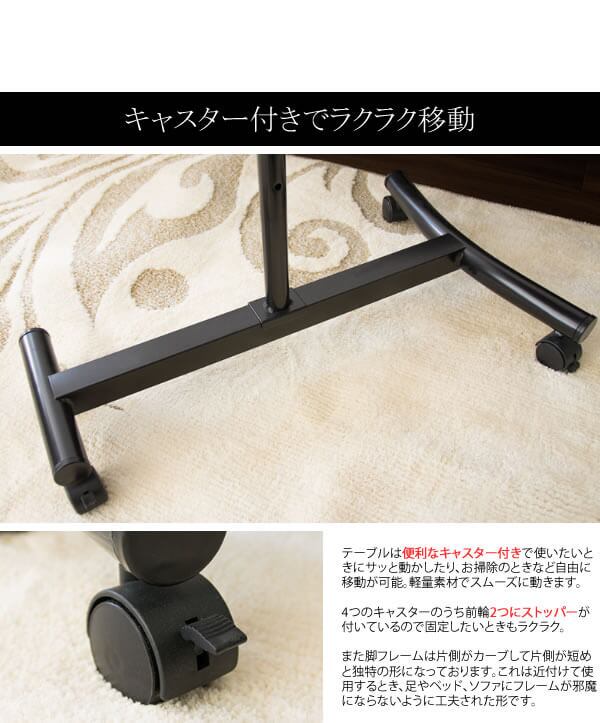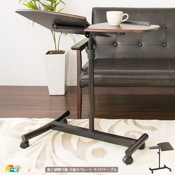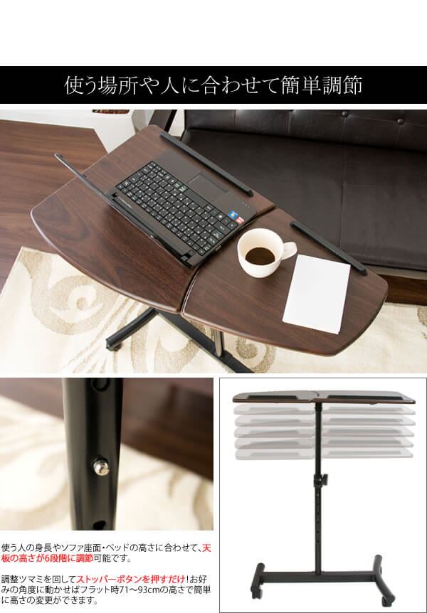 サイドテーブル ハイタイプ ベッドサイド デスクサイド ソファサイド 高さ調整 フォールディングデスク タブレットテーブル 机 キャスター付きテーブル セパレート天板 天板角度調整 ブラウン