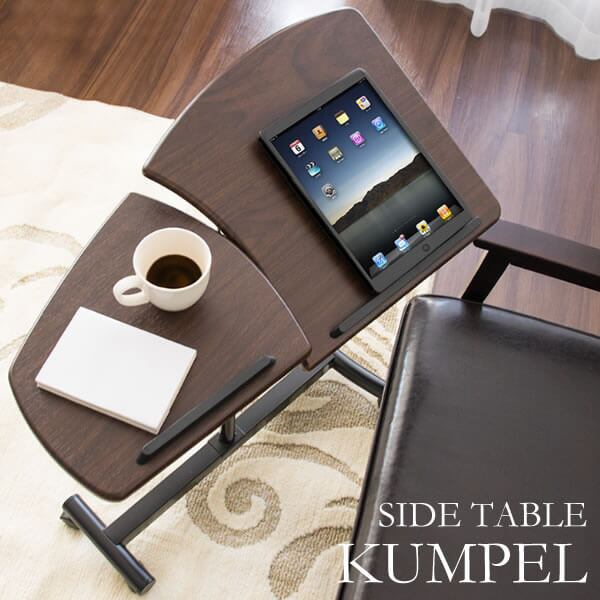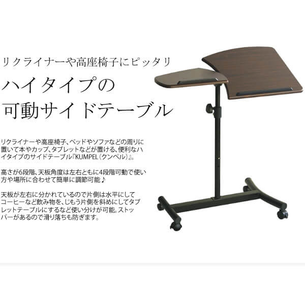 リクライナーや高座椅子、ベッドやソファサイドにおすすめの、タブレットなどが置ける、ハイタイプのサイドテーブルです。