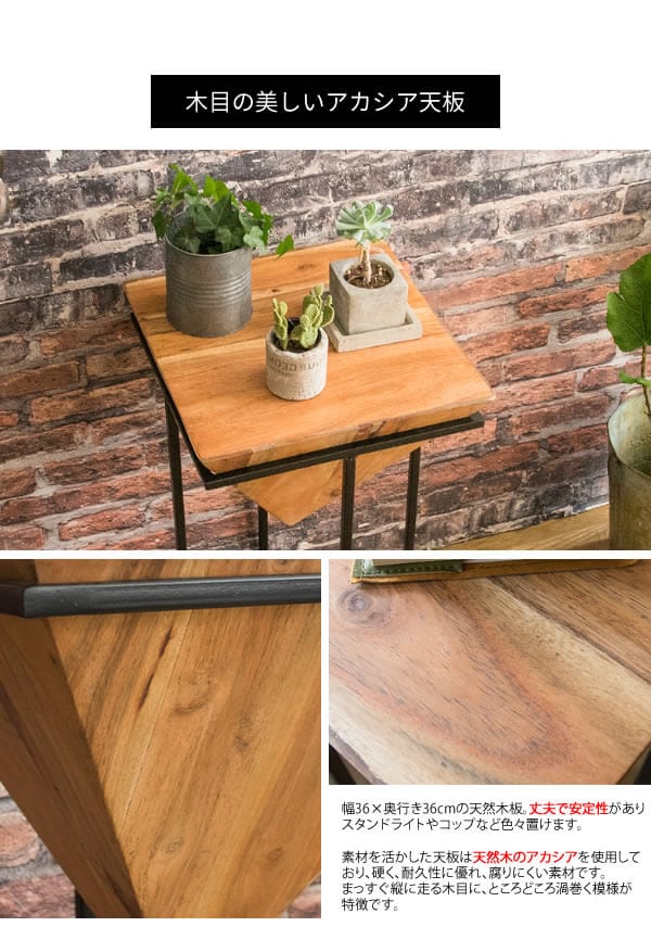 サイドテーブル 36cm幅 スチールフレーム 天然木使用 ソファサイド ベッドサイド ソファ横 ベッド横 幅36cm 奥行36cm 高さ64cm おすすめ おしゃれ 北欧 モダン スタイリッシュ デスクサイドテーブル 春 夏 秋 冬 ミニテーブル サブテーブル アイアン脚 机 テーブル 木製天板