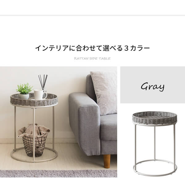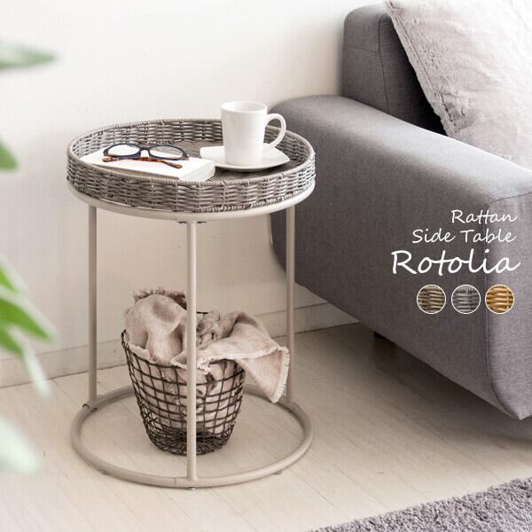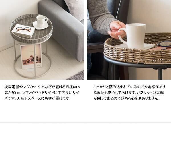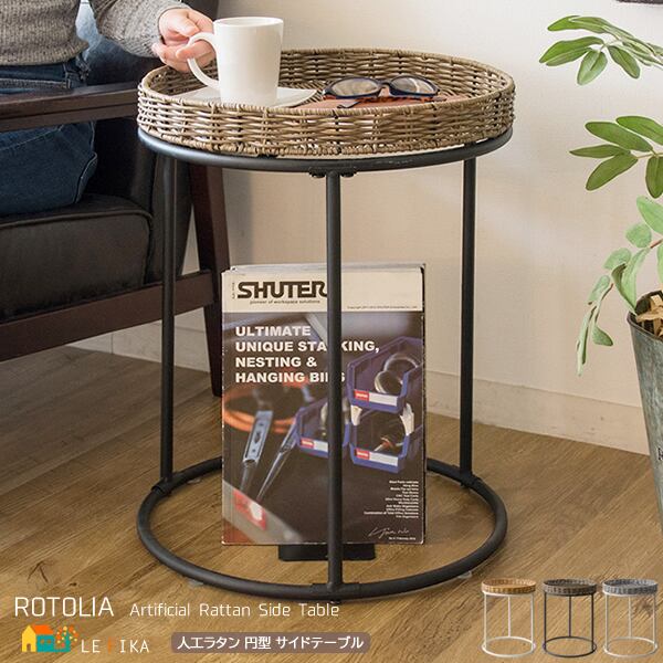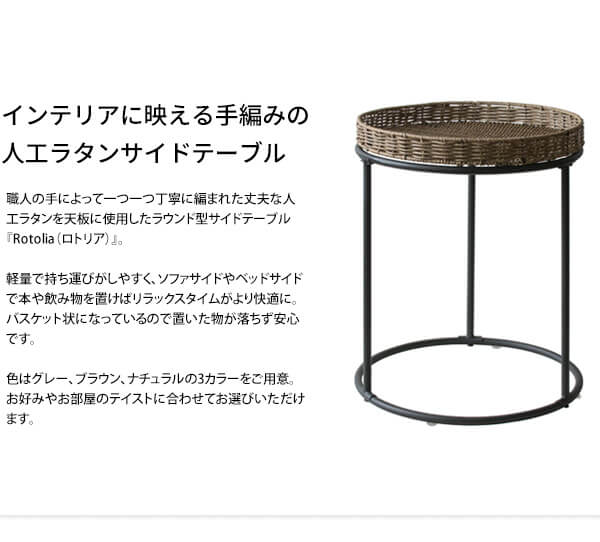 サイドテーブル 円型テーブル 丸型テーブル 円形 丸形 人工ラタン 人工ラタンテーブル ラウンドテーブル ソファサイドテーブル ソファ横 ベッドサイドテーブル ベッド横 ナイトテーブル 机 おすすめ おしゃれ 北欧 グレー ナチュラル ブラウン リビングテーブル