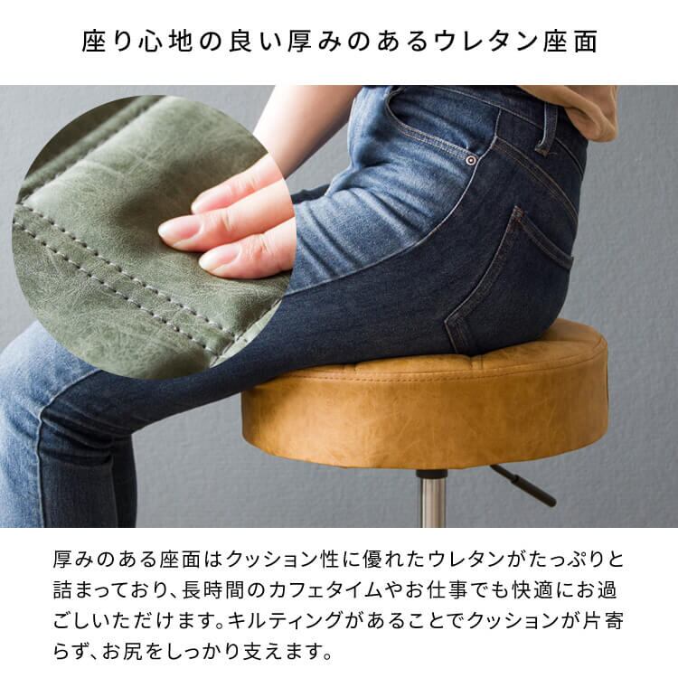 キルティングデザインがおしゃれなラウンド昇降スツール1脚単品です。