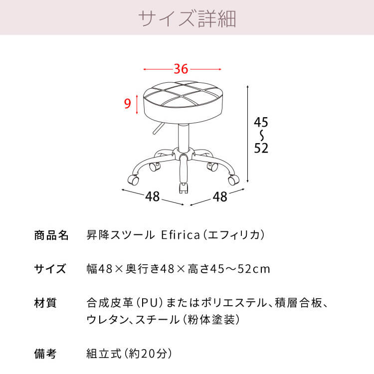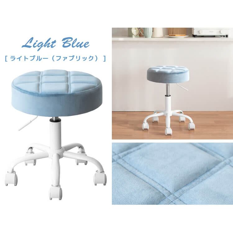 昇降スツール 48cm幅 キャメル グリーン ブラウン ライトピンク ライトグレー ライトブルー アクアブルー アイボリー 合皮チェア ファブリックチェア 昇降椅子 昇降チェア キャスター付きスツール 360度回転 ダイニングスツール 幅48cm 奥行48cm 最大高さ52cm おすすめ 椅子
