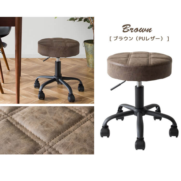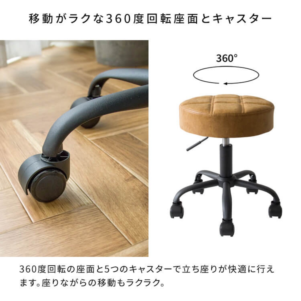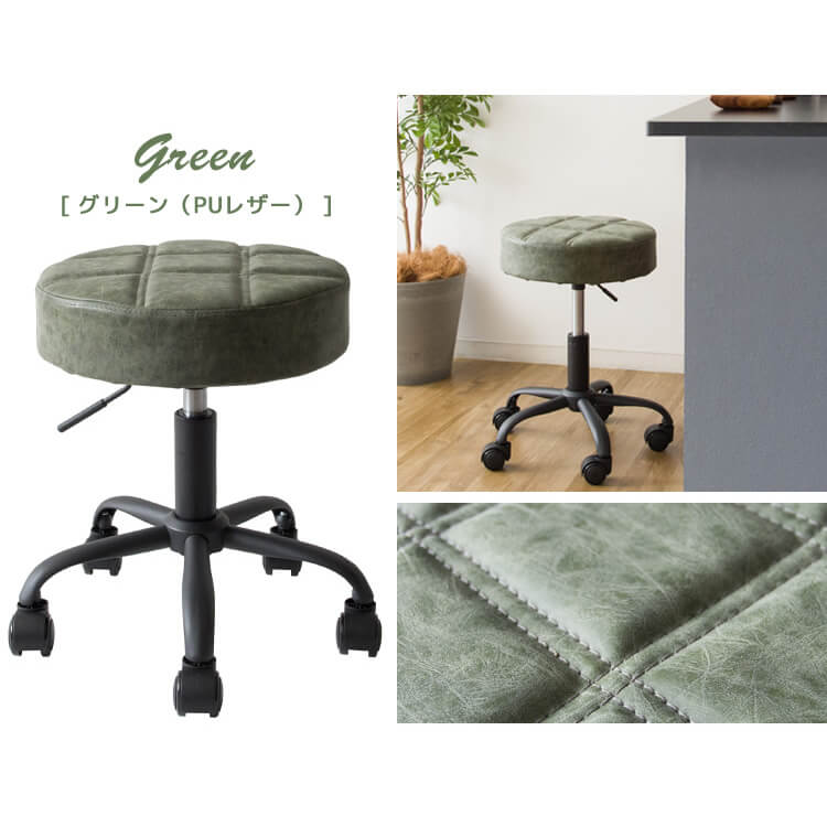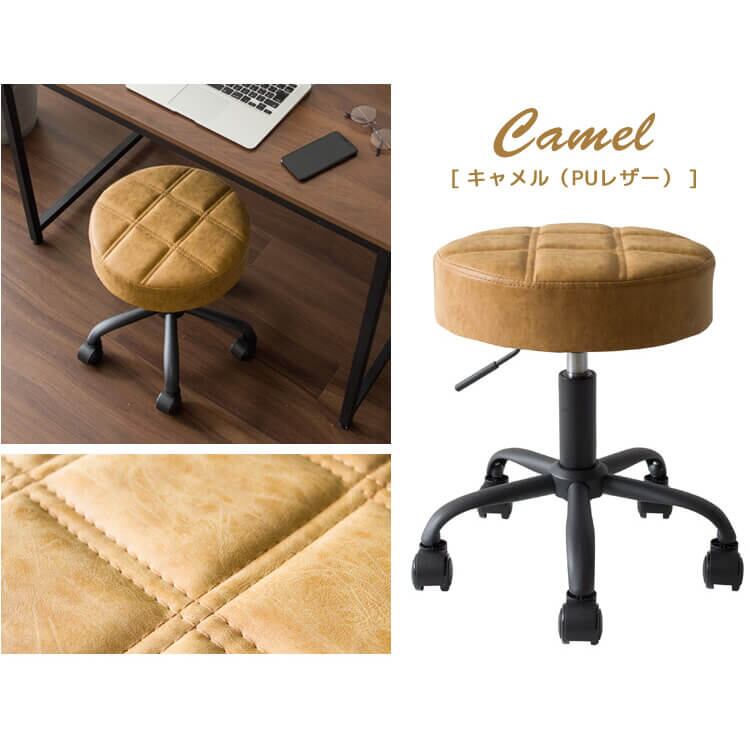 キャスター付き スツール 丸椅子 円型スツール 360度回転 昇降式 昇降スツール キャスター付きスツール キャメル ブラウン グリーン おすすめ おしゃれ 北欧 リビングスツール 椅子 デスクスツール 合皮スツール 合成皮革 PUレザー ファブリックスツール