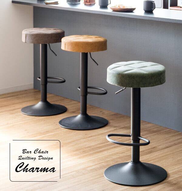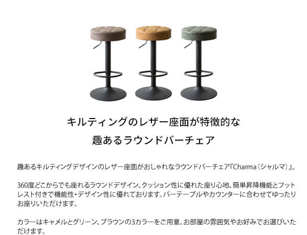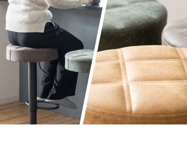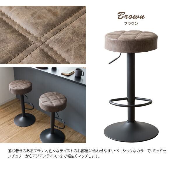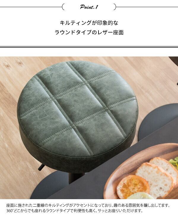 キルティングデザインのPUレザー座面がおしゃれなラウンドバーチェア1脚単品です。