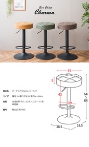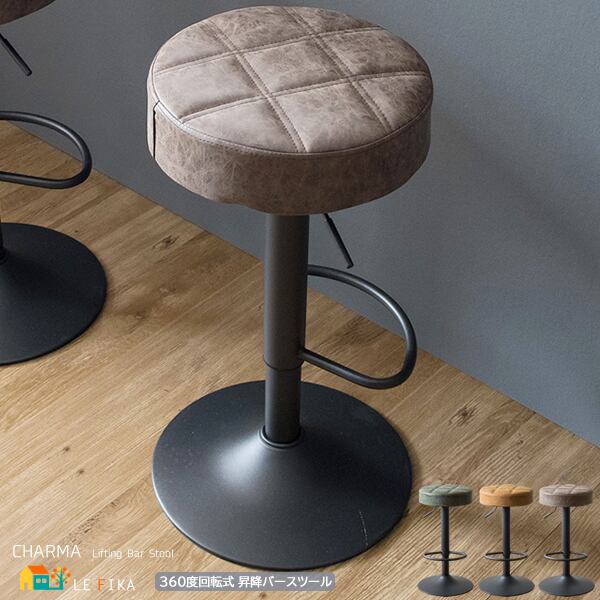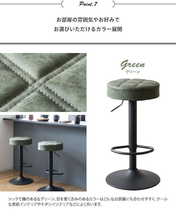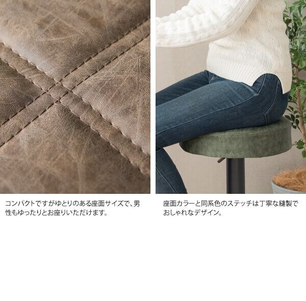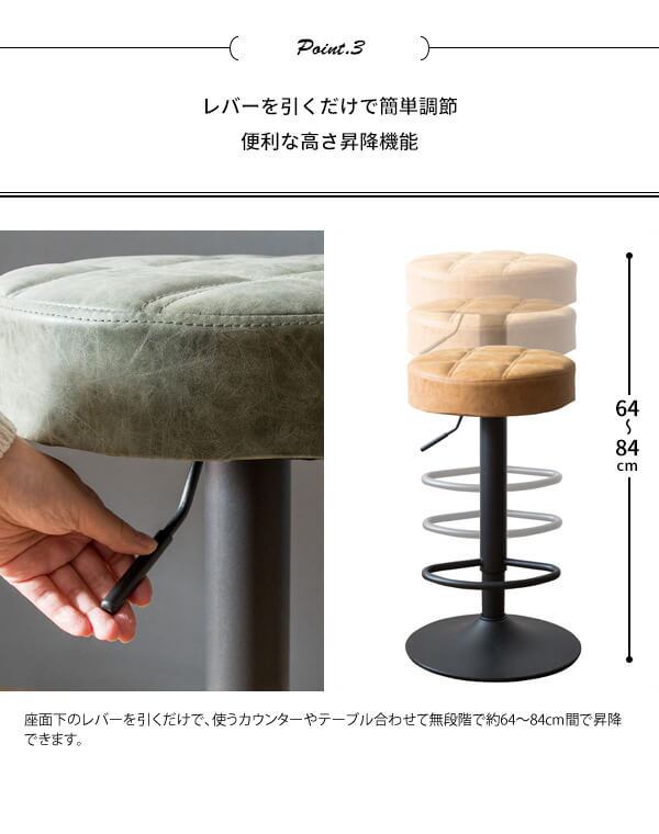 バースツール 38.5cm幅 グリーン キャメル ブラウン 昇降式スツール 360度回転 合皮チェア 合成皮革 椅子 幅38.5cm 奥行38.5cm 高さ64cm 最大高さ84cm おすすめ おしゃれ 北欧 モダン スタイリッシュ フットレスト付き 円型 円形 丸型 丸形 丸椅子 カウンターチェア 椅子
