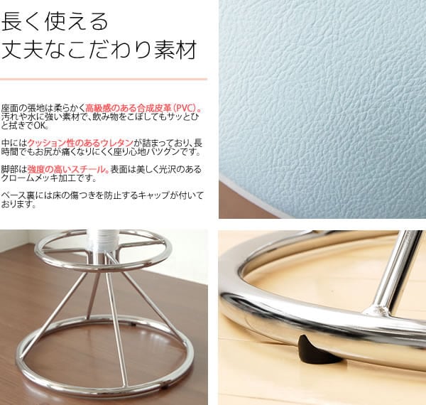 ■素材:合成皮革(PVC)(張地)、ウレタン、ポリプロピレン、スチール(クロームメッキ)