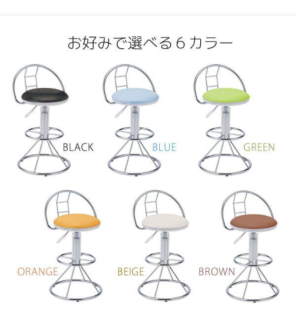 バーチェア 43cm幅 ブラック グリーン オレンジ ベージュ ブラウン ブルー 昇降チェア 360度回転 合皮チェア 合成皮革 椅子 幅43cm 奥行44cm 高さ75cm 最大高さ86cm 座面高58cm 最大座面高69cm おすすめ おしゃれ 北欧 モダン スタイリッシュ カウンターチェア PUレザー 合皮