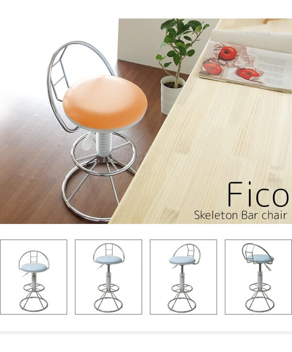 光沢の美しいクロームメッキのベースや足置き、カラーバリエーション豊富な丸い座面が特徴のスケルトンバーチェア1脚単品です。