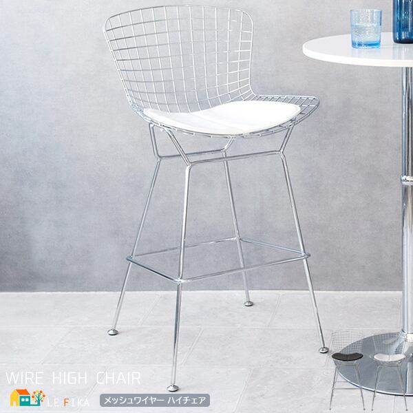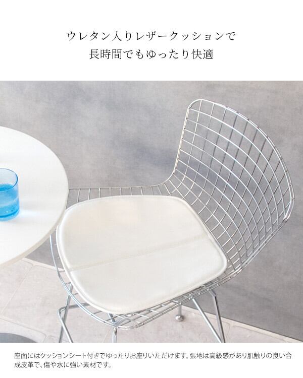 ワイヤーチェア バースツール リプロダクト品 ハリー ベルトイア ワイヤーハイチェア スチールフレーム ブラック ホワイト 黒 白 カウンターチェア ハイチェア おすすめ おしゃれ 合皮チェア 座面合皮 合成皮革