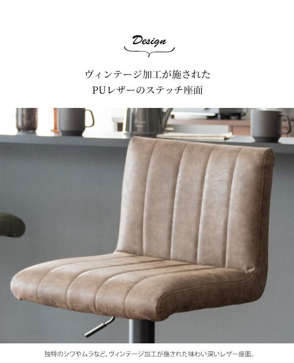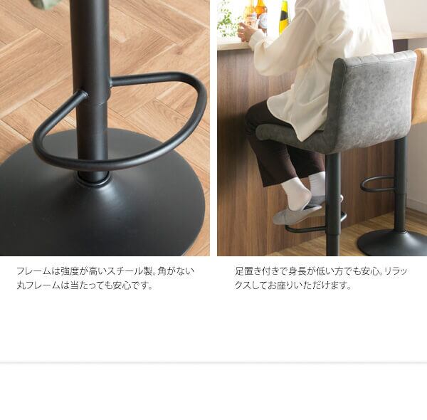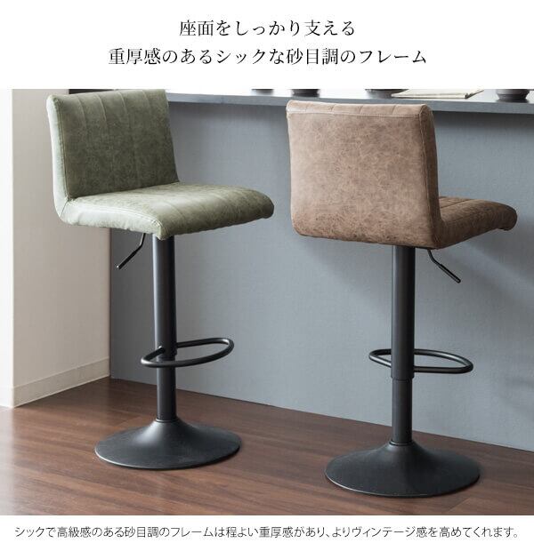 バーチェア カウンターチェア ハイチェア おすすめ おしゃれ 北欧 合皮チェア 合成皮革 PUレザー フェイクレザー キャメル ダークグレー グリーン ブラウン 昇降チェア 回転チェア 360度回転 フットレスト付き スチール脚 足置き付き