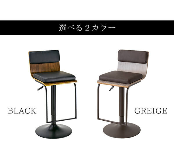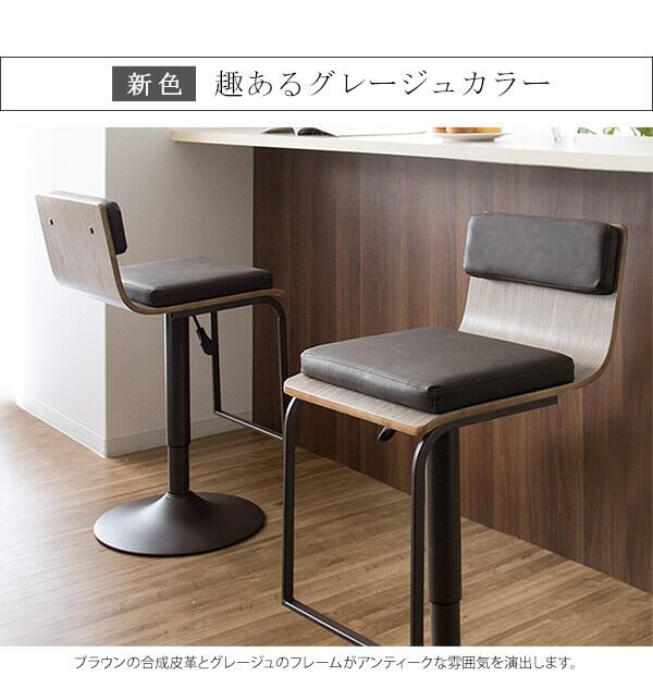 ハイチェア 41cm幅 ブラック グレージュ バーチェア カウンターチェア 昇降式チェアー 360度回転チェア 昇降椅子 フットレスト付き 幅41cm 奥行49cm 高さ84cm 最大高さ100cm 座面高63cm 最大座面高85cm おすすめ おしゃれ 北欧 モダン 合皮チェア 合成皮革 PUレザー 椅子
