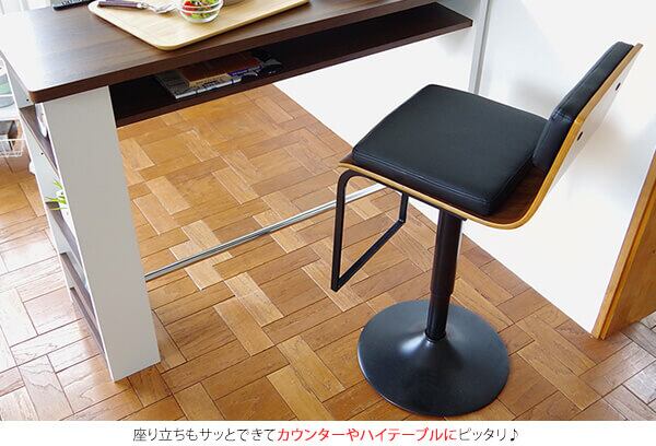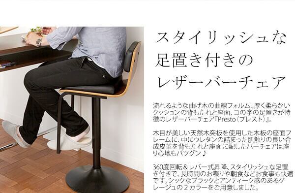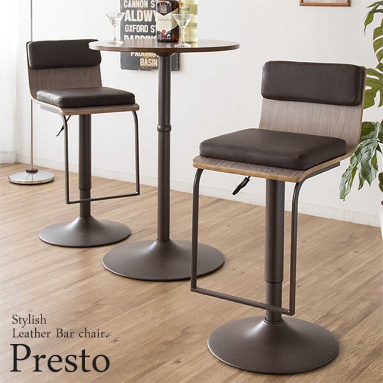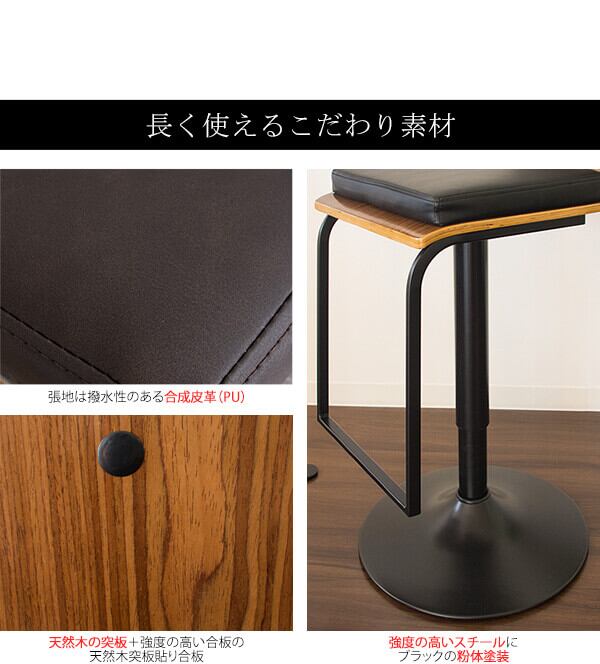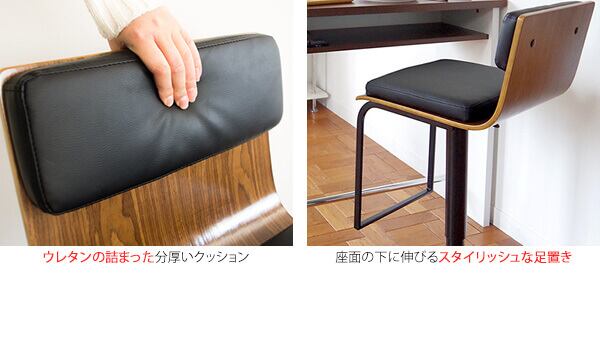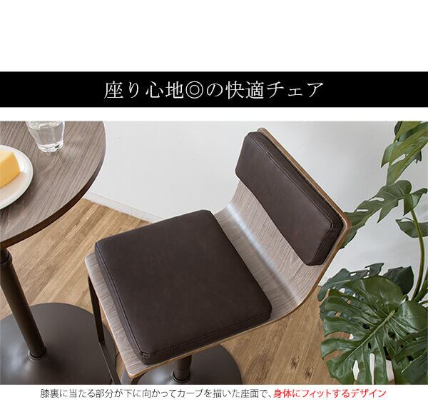 ウレタンの詰まった肌触りの良い合成皮革を背もたれと座面に配した座り心地にもこだわったバーチェアです。