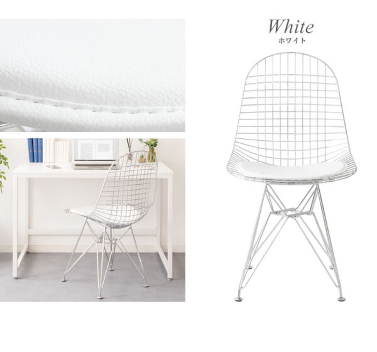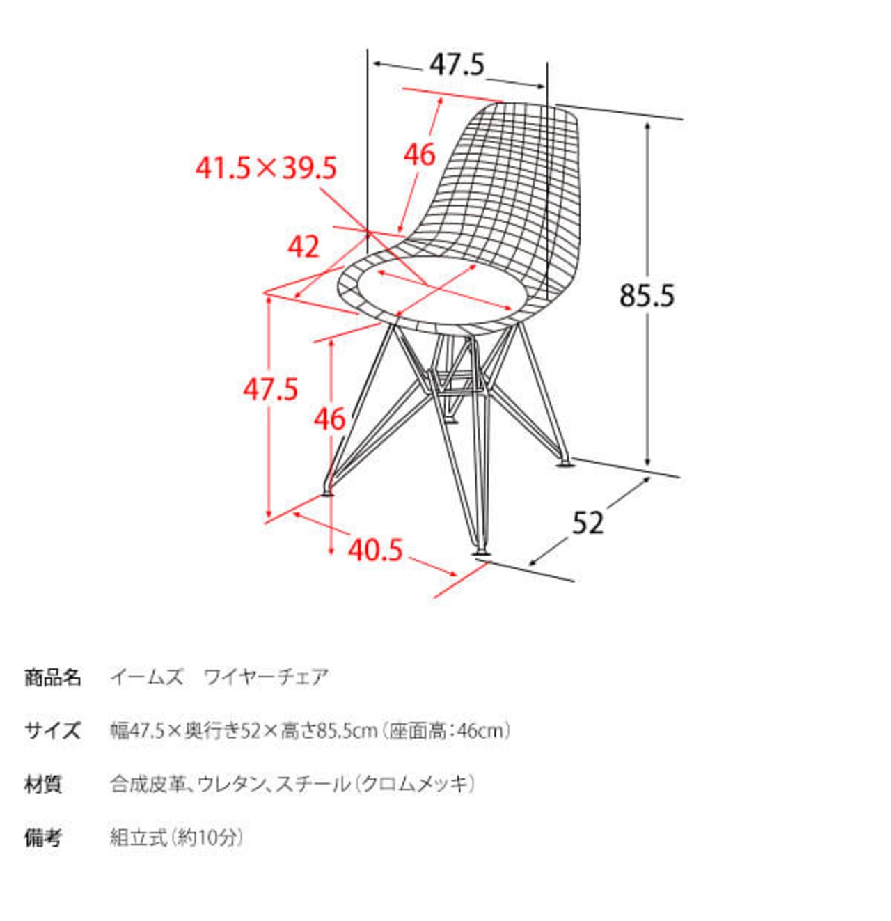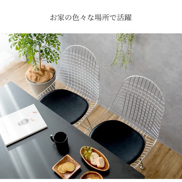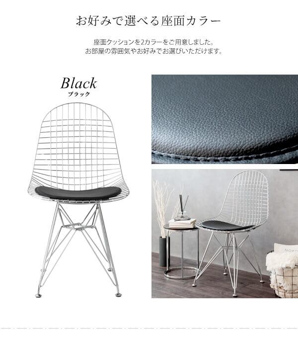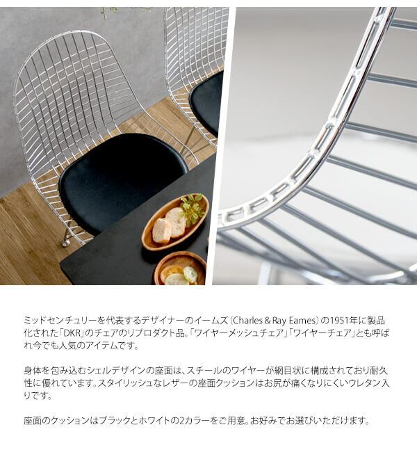ワイヤーチェア 1脚 単品 47.5cm幅 ブラック ホワイト 黒 白 ワークチェア イームズ リプロダクト 合皮チェア スチールフレーム 幅47.5cm 奥行52cm 高さ85.5cm 座面高46cm おすすめ おしゃれ 北欧 モダン スタイリッシュ シェルチェア メッシュワイヤー 椅子 チェアー