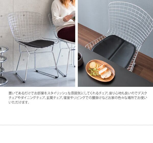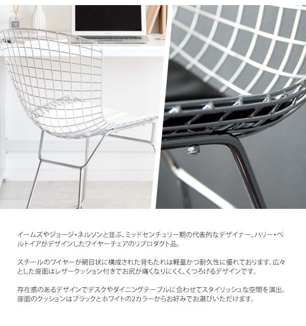 ワイヤーチェア リプロダクト品 ハリー ベルトイア チェア おすすめ おしゃれ ブラック ホワイト 黒 白 合皮チェア 合成皮革 スチール脚 ワイヤーチェア デスク用チェア ワークチェア ダイニングチェア