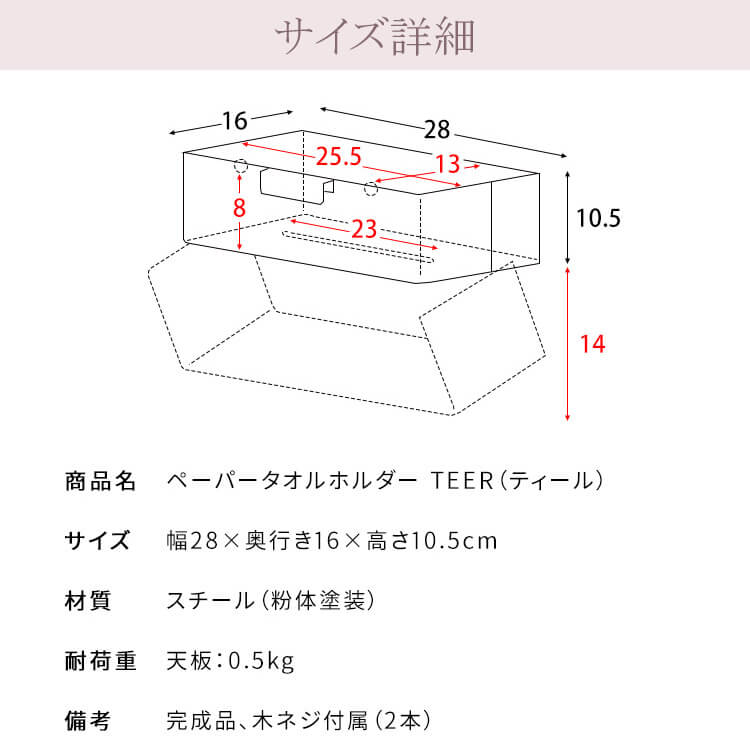 壁にネジ止めするだけで設置可能で洗面所やキッチンなど、省スペースで使用することができる壁付け式のペーパータオルホルダーです。