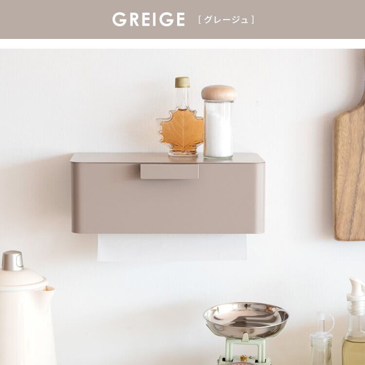 壁付け式ペーパータオルホルダー 28cm幅 グレージュ ミルク ピンク 壁面取付式タオルペーパーホルダー キッチン収納 洗面所収納 幅28cm 奥行16cm 高さ10.5cm おすすめ おしゃれ 北欧 モダン ペーパータオル収納ボックス タオルペーパー収納ボックス 壁付け式 スチール製