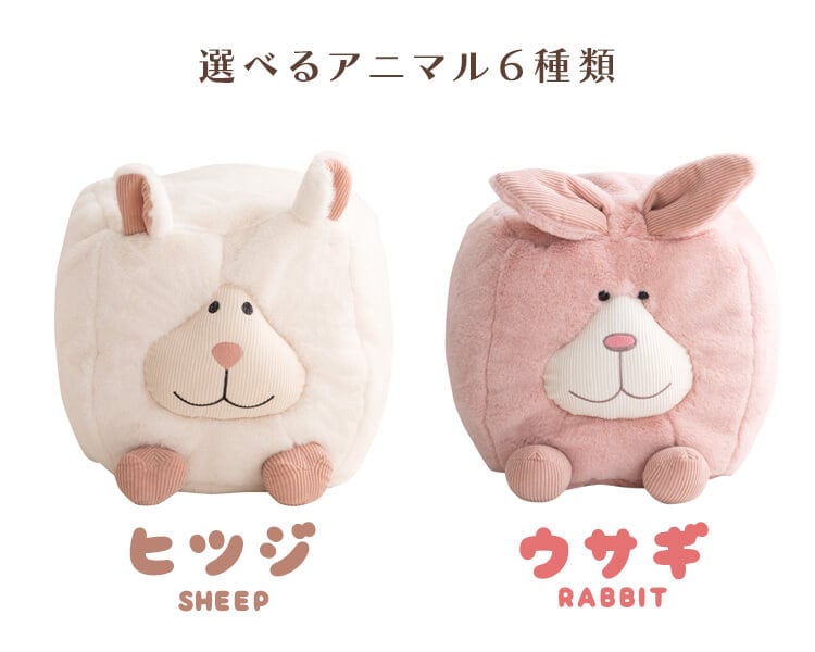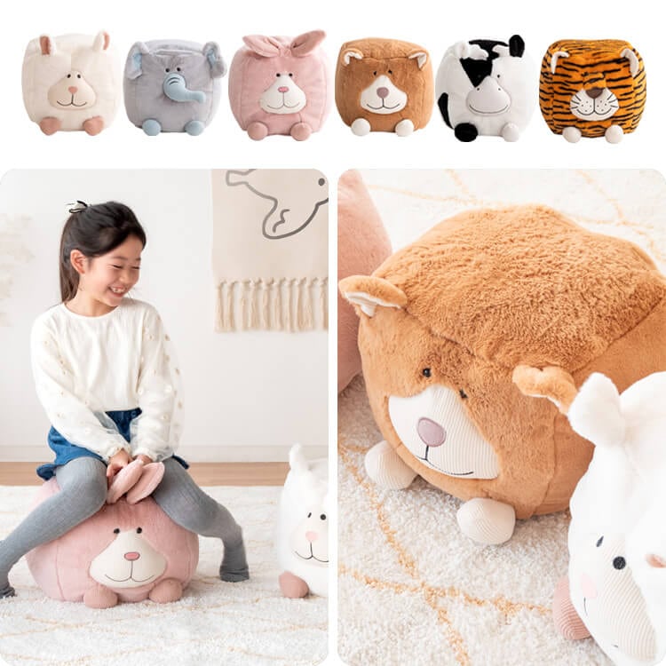 可愛いアニマルデザインのキューブ型のビーズクッションスツールです。