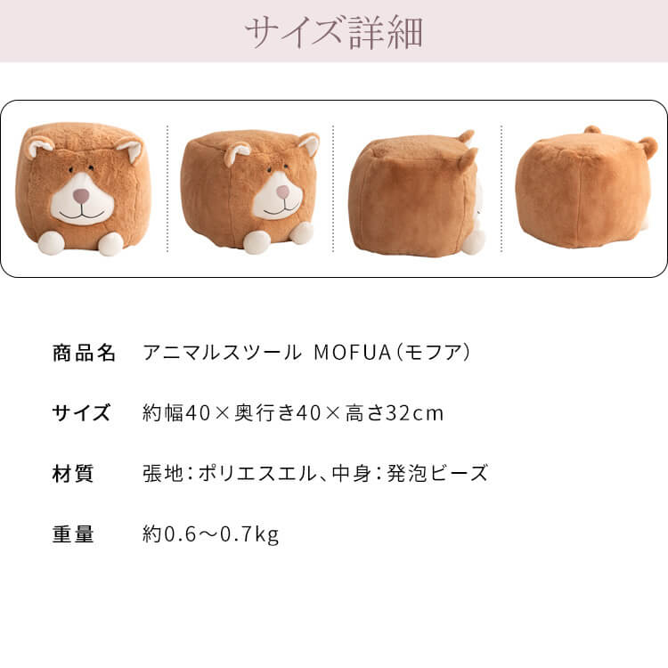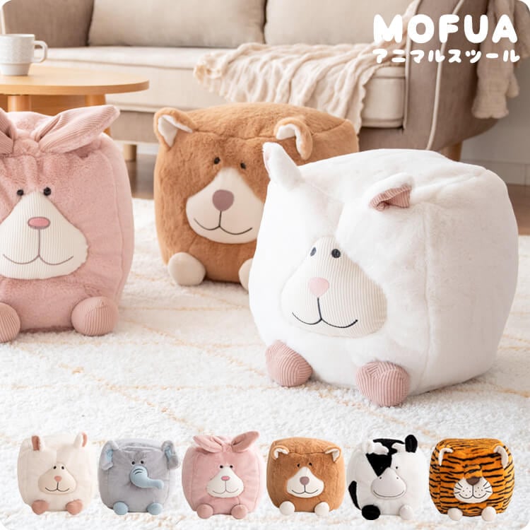 アニマルスツール 40cm幅 ウサギ ヒツジ ウシ クマ ゾウ トラ 兎 羊 牛 熊 象 虎 椅子 チェア アニマルデザイン アニマルモチーフ 幅40cm 奥行40cm 高さ32cm おすすめ おしゃれ リビングチェア 足置き サブチェア 腰掛け スツール 動物 ビーズクッションスツール オブジェ