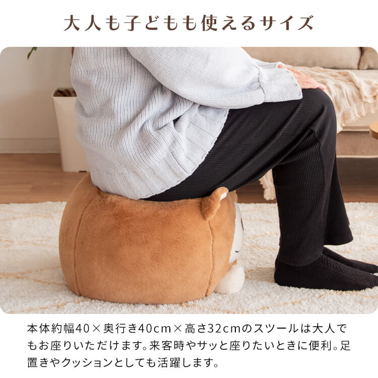 発泡ビーズがたっぷり詰まったクッションスツールで、お子様用イスとしてはもちろん大人の方もお座りいただけます。