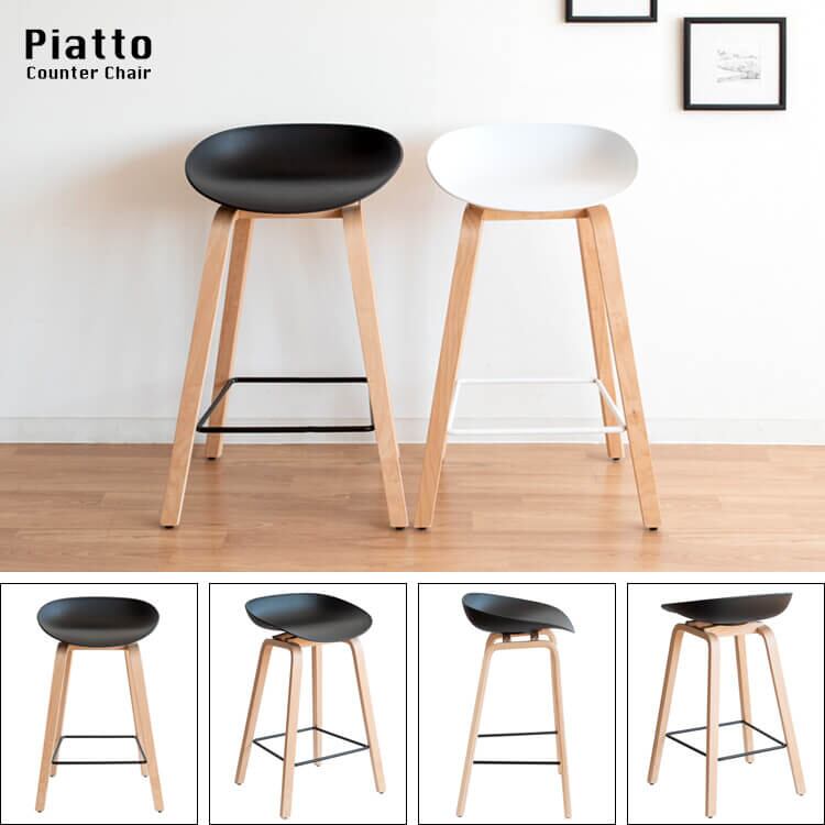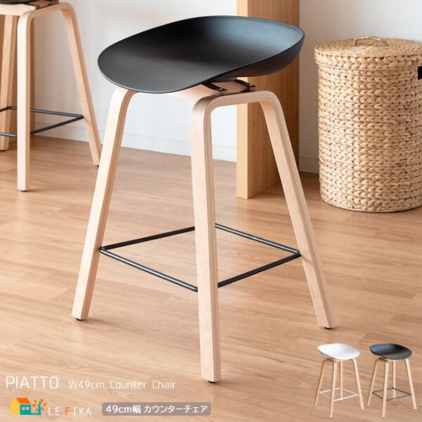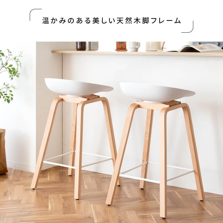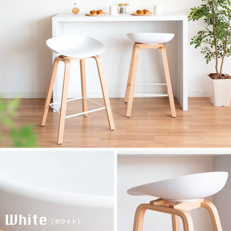 バーチェア カウンターチェア 49cm幅 ブラック ホワイト 黒 白 木製脚 天然木脚 足置き付き おすすめ おしゃれ 北欧 モダン スタイリッシュ 椅子 チェアー スツール 肘置き無し アームレスチェア ハイチェア