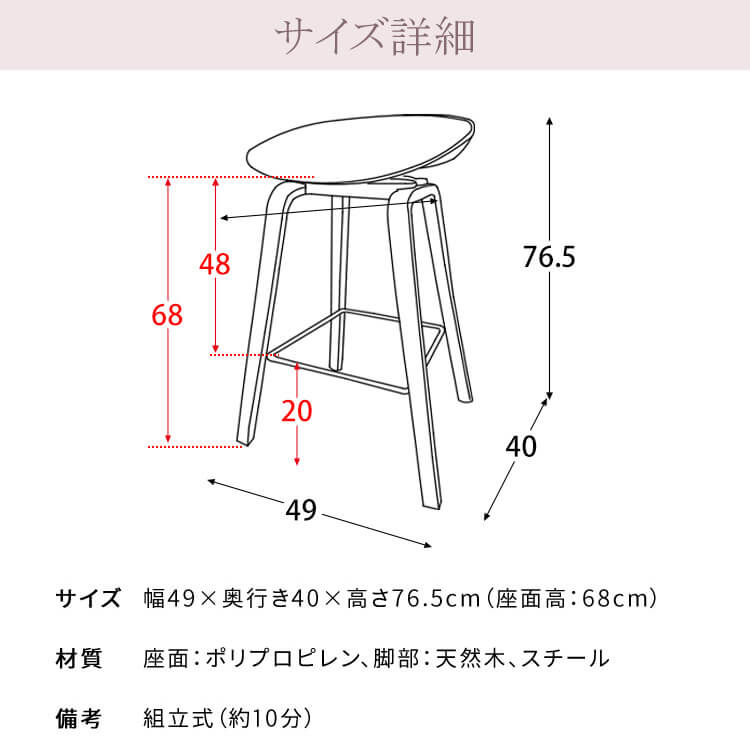 ■商品サイズ(約):幅49cm、奥行40cm、高さ76.5cm、座面高68cm