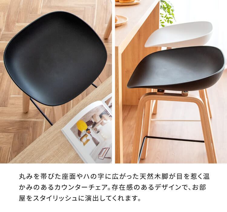 カウンターチェア 49cm幅 ブラック ホワイト 黒 白 バーチェア ハイチェア 椅子 チェアー 足置き付き 天然木使用 幅49cm 奥行40cm 高さ76.5cm 座面高68cm おすすめ おしゃれ 北欧 モダン スタイリッシュ 木製脚 キッチンカウンターチェア 肘置き無し チェア アームレスチェア