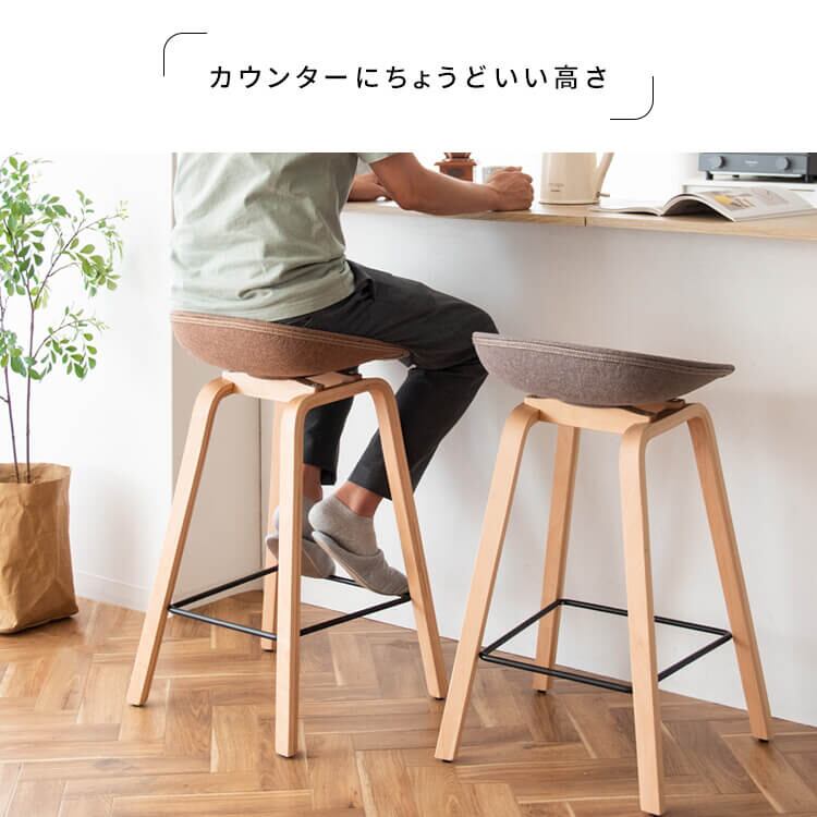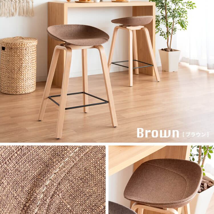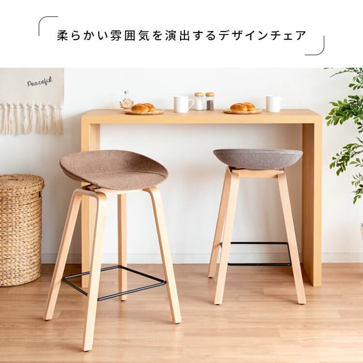 丸みを帯びたファブリック座面や可愛いステッチなどデザイン性にもこだわったバーチェアです。