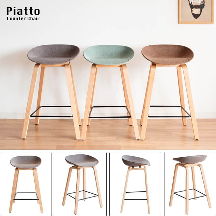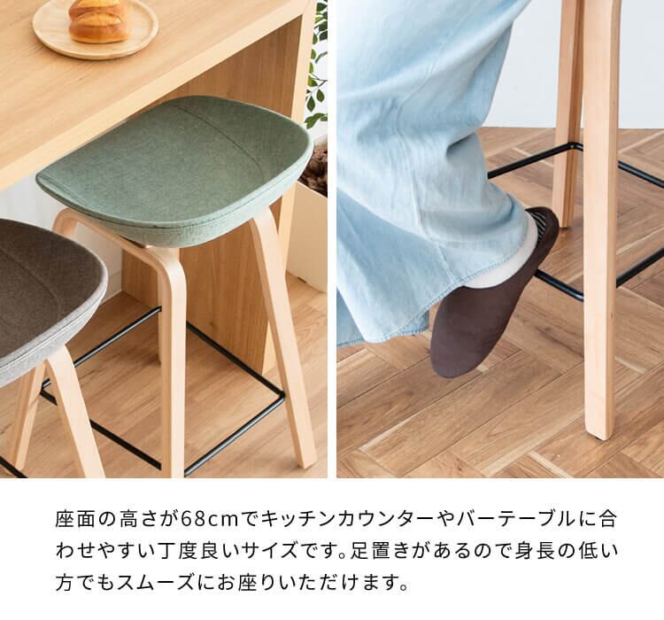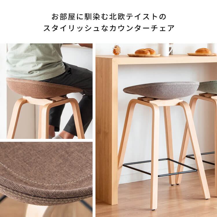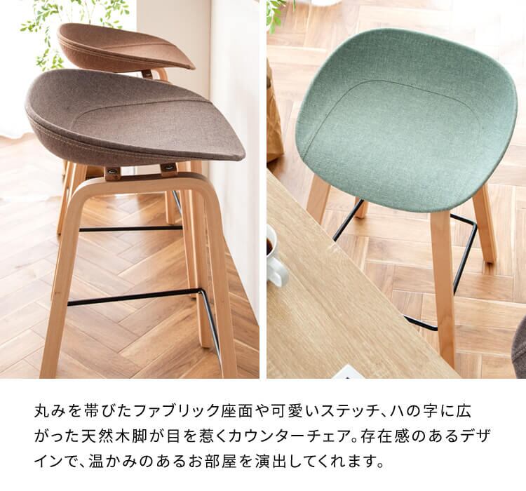 カウンターチェア 49cm幅 グリーン ブラウン グレー バーチェア ハイチェア ファブリックチェア 椅子 チェアー 足置付き 天然木使用 幅49cm 奥行40cm 高さ76.5cm 座面高68cm おすすめ おしゃれ 北欧 モダン スタイリッシュ 木製脚 キッチンカウンターチェア アームレスチェア
