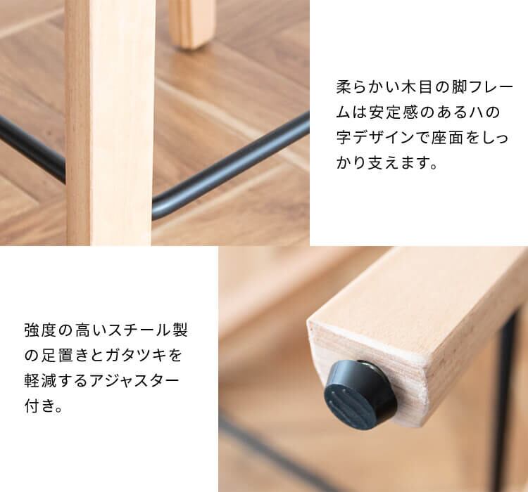 座面高さが(約)68cmで、キッチンカウンターやバーテーブルに合わせやすく、足置きがあるので身長の低い方でもスムーズに座って頂くことが可能です。
