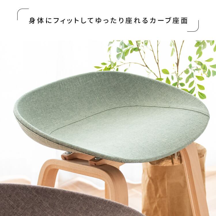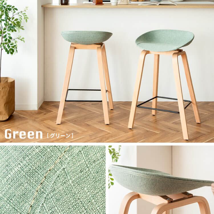バーチェア カウンターチェア 49cm幅 グリーン ブラウン グレー 木製脚 天然木脚 足置き付き おすすめ おしゃれ 北欧 モダン スタイリッシュ 椅子 チェアー スツール 肘置き無し アームレスチェア ハイチェア