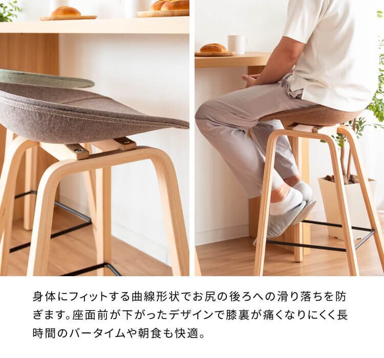 美しい曲線を描いた座面は身体にフィットし、よりリラックスしてお座りいただけるカウンターチェア1脚単品です。