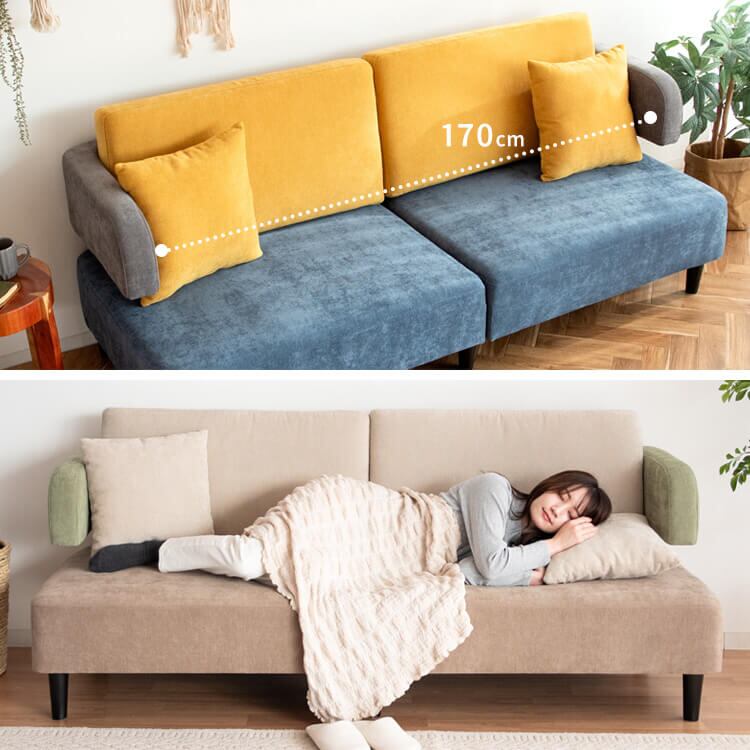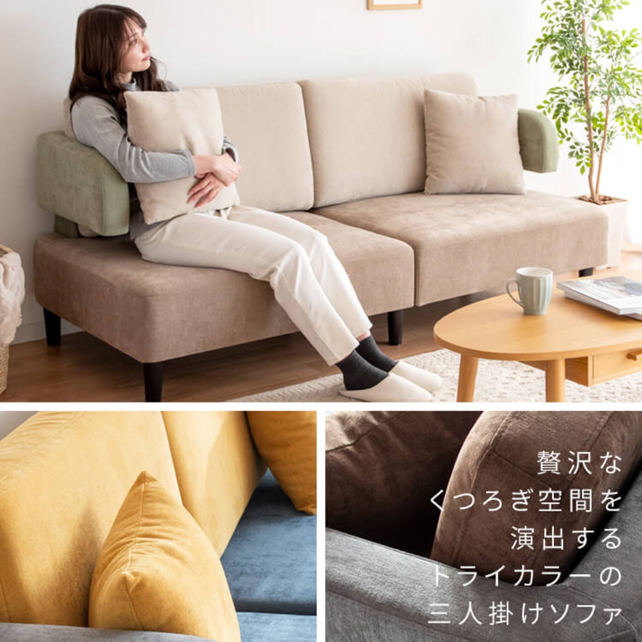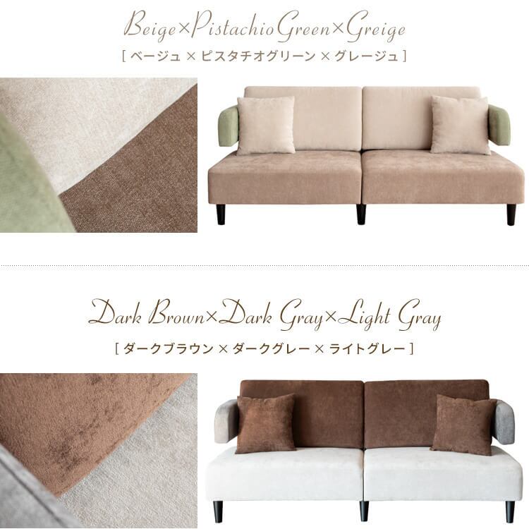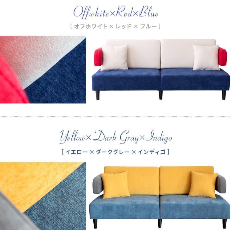存在感のあるおしゃれなトライカラーデザインでワンランク上のお部屋を演出してくれる三人掛けソファです。