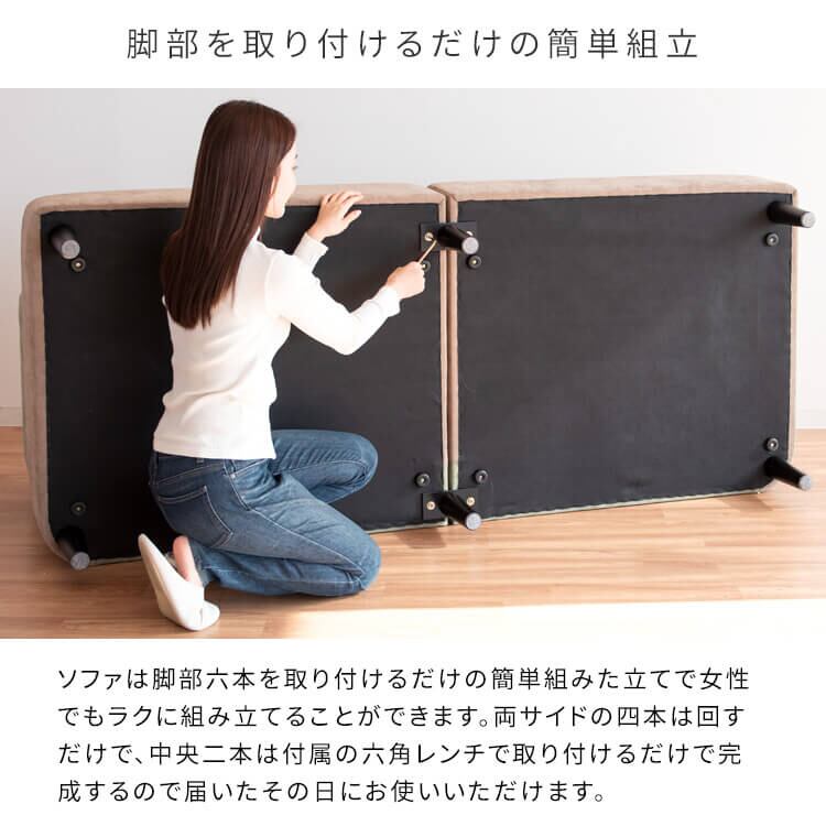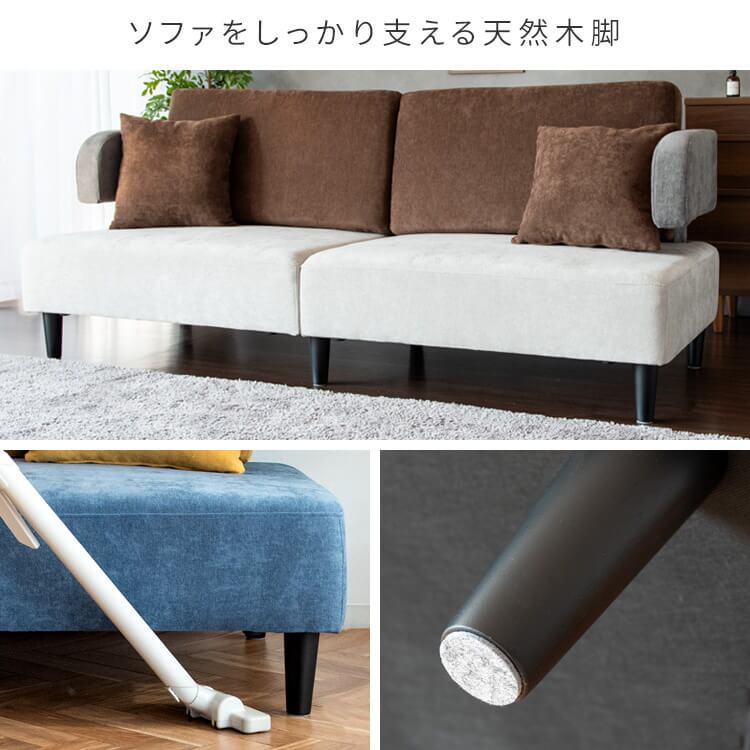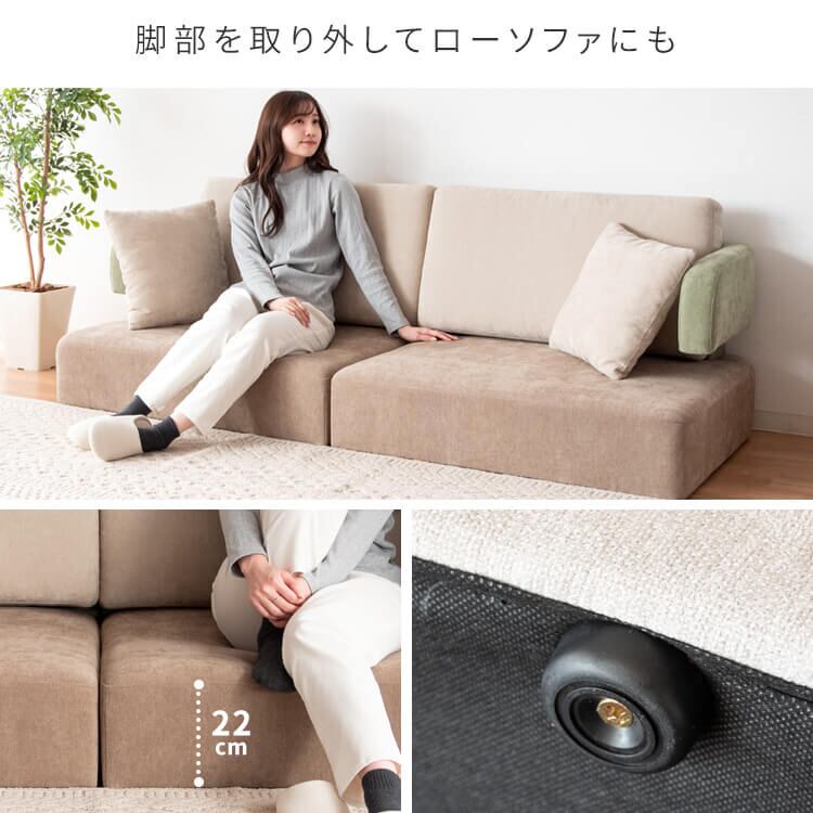 天然木脚は取り外してローソファとしてもお使いいただける2Wayタイプの3人用ソファです。