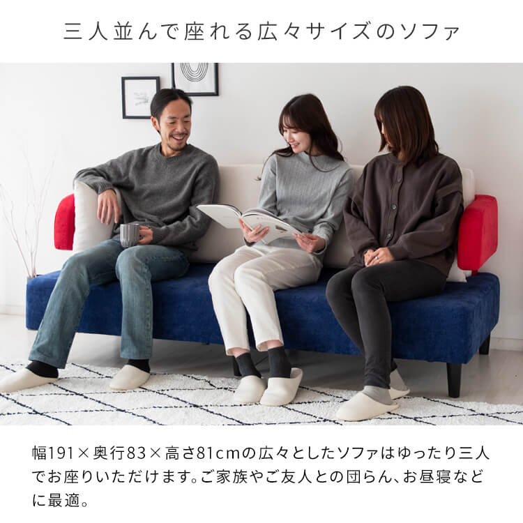 3人掛けソファ 191cm幅 オフホワイトレッドブルー イエローダークグレーインディゴ ベージュピスタチオグリーングレージュ ダークブラウンダークグレーライトグレー 三人用ソファ 幅191cm 奥行83cm 高さ81cm 座面高39cm おすすめ おしゃれ 北欧 モダン ソファ アームソファー