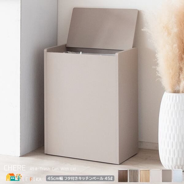 キャスター付き ゴミ箱 45cm幅 ブラウン ナチュラル グレージュ ホワイト 木目柄 大理石柄 モカ 単色無地 スリム コンパクト 省スペース フタ付きゴミ箱 くずかご おすすめ おしゃれ 北欧 モダン 隠しキャスター付き 幅45cm 奥行26.5cm 高さ61cm 45リットル キッチンペール