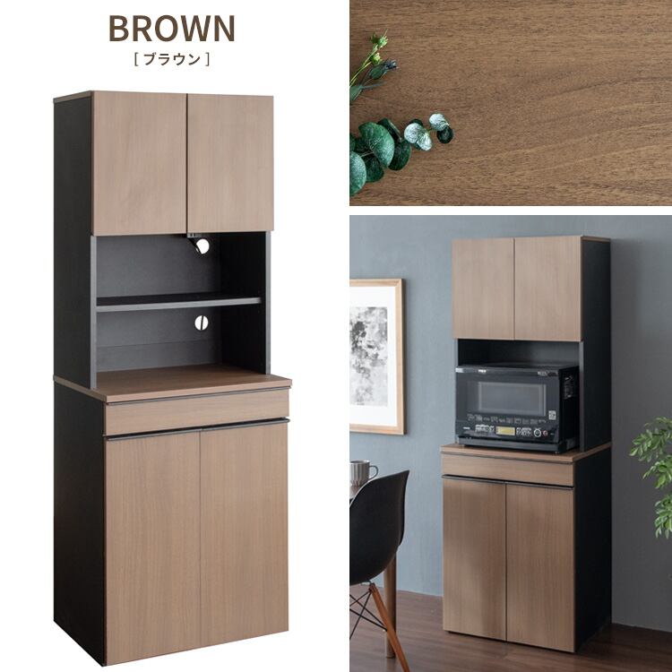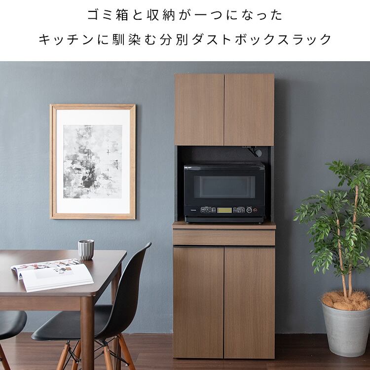 ゴミ箱付きキッチンラック 60cm幅 ブラウン ナチュラル ホワイト ゴミ箱上ラック レンジラック レンジ台 キャスター付ゴミ箱 おすすめ おしゃれ 北欧 モダン スタイリッシュ 2口コンセント付き 可動棚 オープン収納 扉付き収納 引き出し収納 幅60cm 奥行42cm 高さ170cm 収納