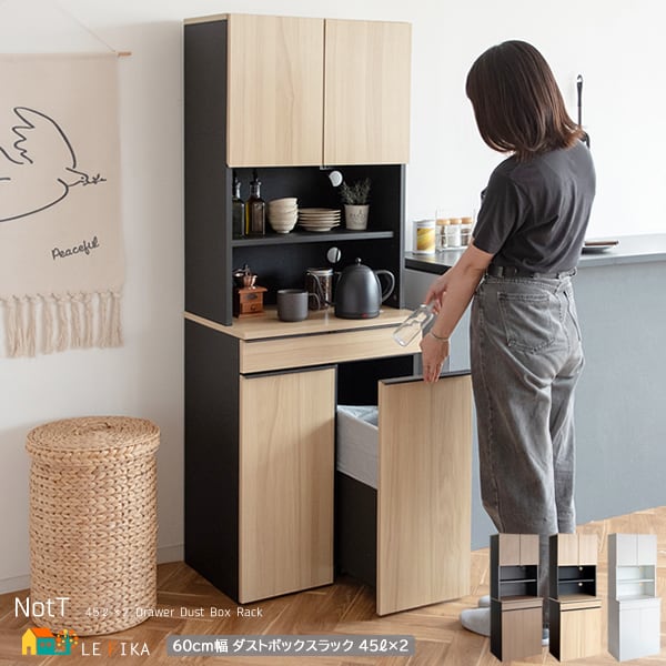 ゴミ箱と収納が一つになった60cm幅のダストボックスラックです。