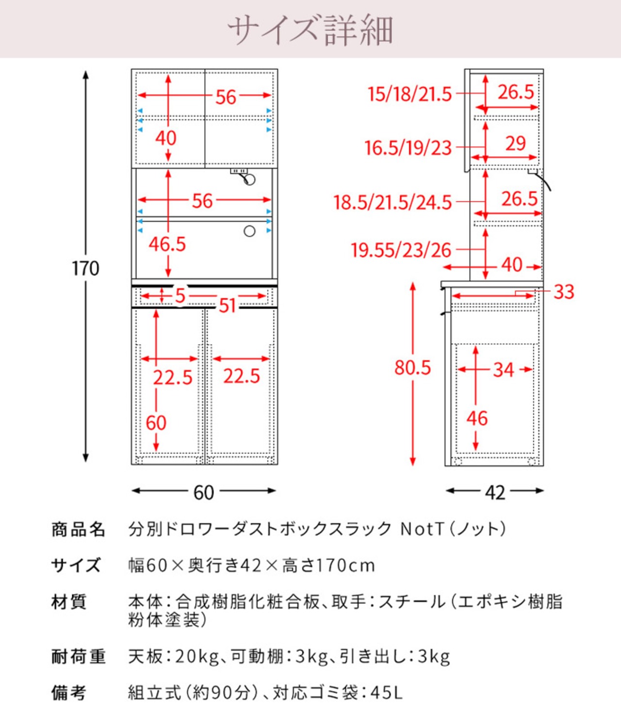 ■商品サイズ(約):幅60cm、奥行42cm、高さ170cm