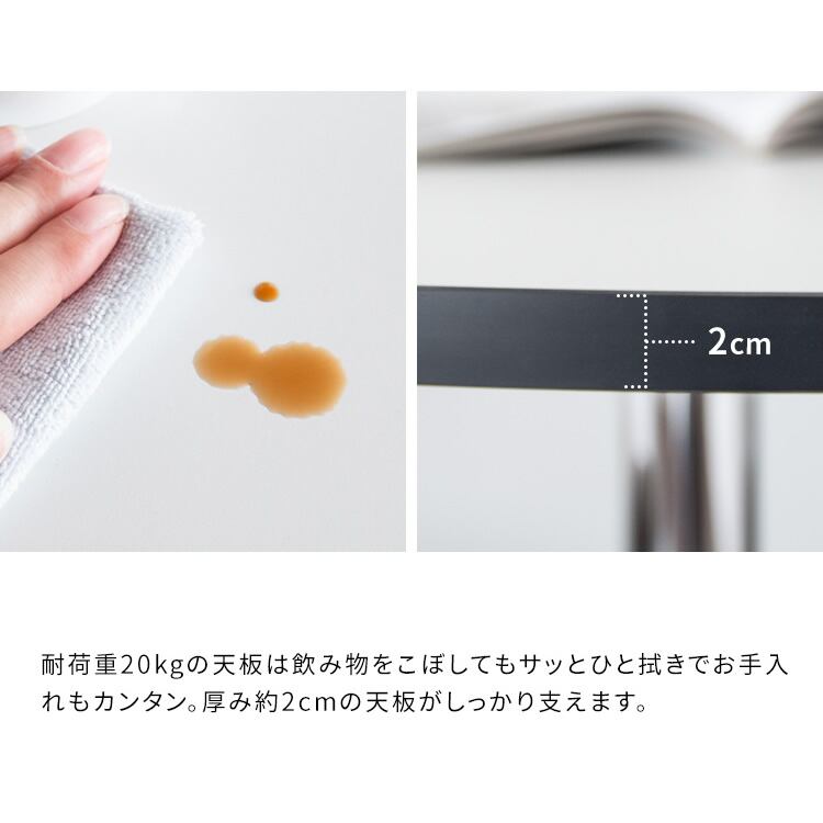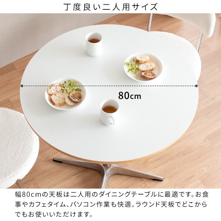 天板幅(約)80cmあるので、2人用のダイニングテーブルにおすすめのサイズ感で、お食事やカフェタイム、パソコン作業にもおすすめです。
