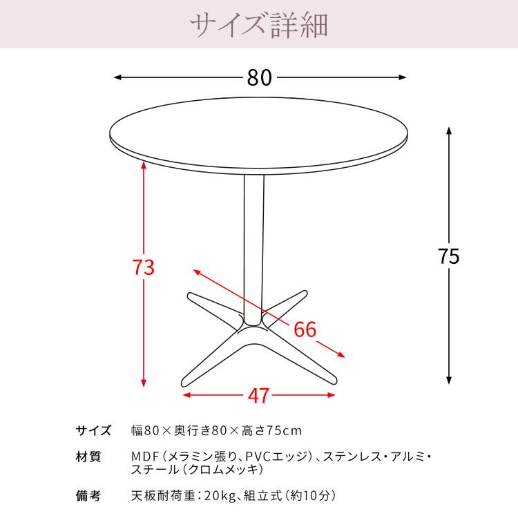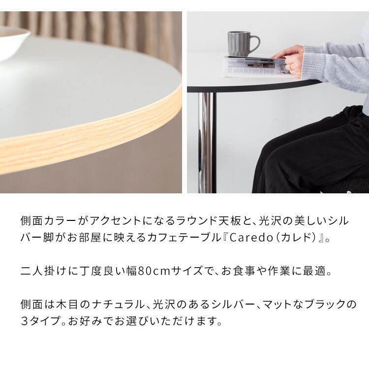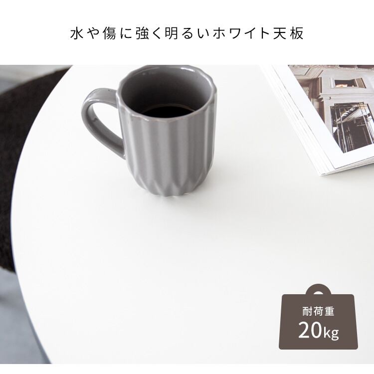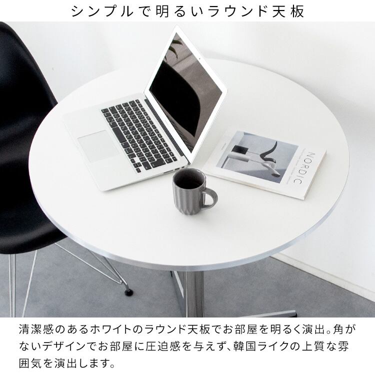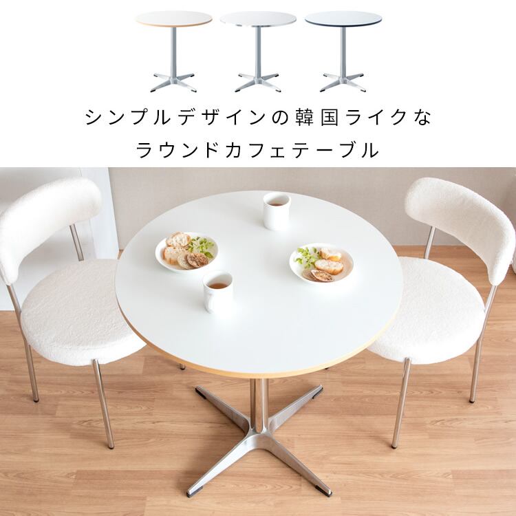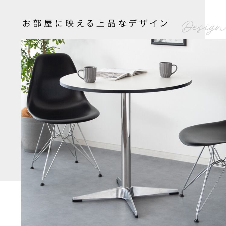 清潔感のあるラウンド型の天板でお部屋を明るく演出してくれる80cm幅円型のカフェテーブルです。