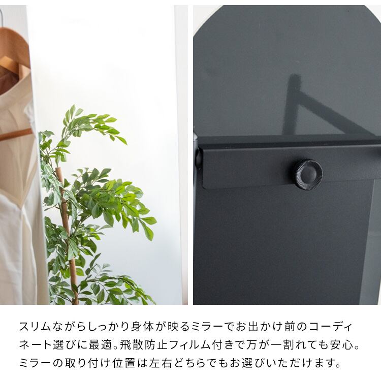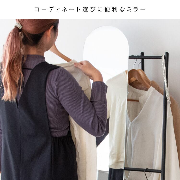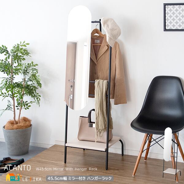 スリムながらしっかりと身体が映るミラー付きの45.5cm幅のハンガーラックです。