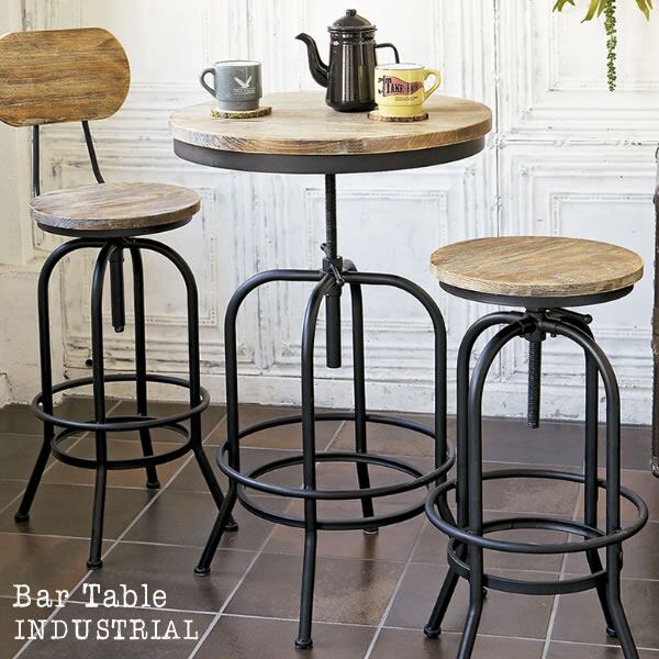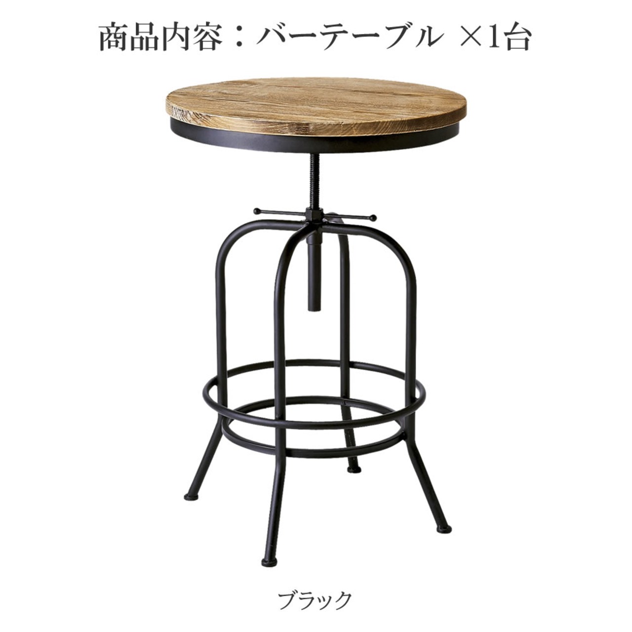 バーテーブル 60cm幅 ブラック 黒 円形テーブル 丸形テーブル 円型テーブル 丸型テーブル 丸テーブル 丸机 ラウンドテーブル 天然木 パイン材 スチールフレーム 円形天板 ヴィンテージ加工 おすすめ おしゃれ 北欧 モダン ミッドセンチュリー 足置き付き 高さ調整可能 昇降テーブル 昇降式テーブル カフェテーブル 机 作業テーブル 作業台 テーブル