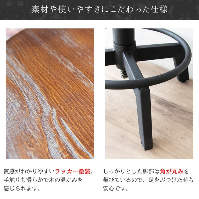 座面には使うほどに馴染み味わいが出る、天然木のパイン材を使用しています。