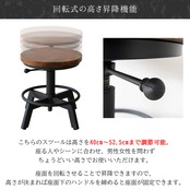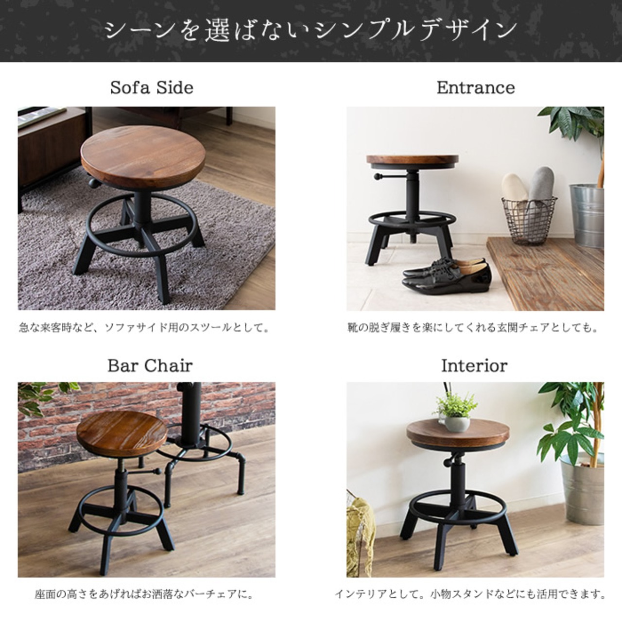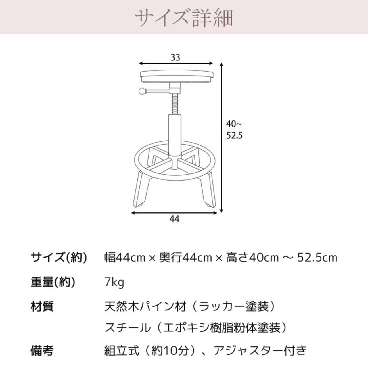 座面高40〜52.5cmまで昇降可能で、ダイニングでの使用はもちろん、玄関用のスツールなど、用途に合わせてご使用可能です。