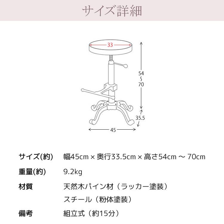 ■商品サイズ(約):幅45cm、奥行35.5cm、高さ54cm〜高さ70cm