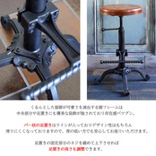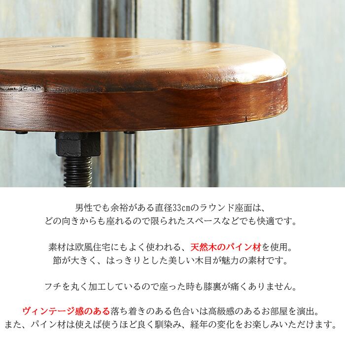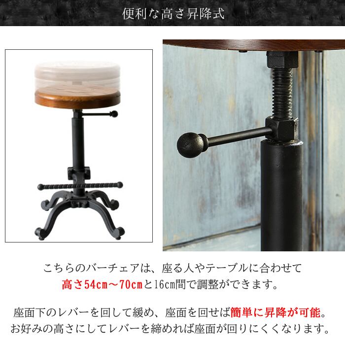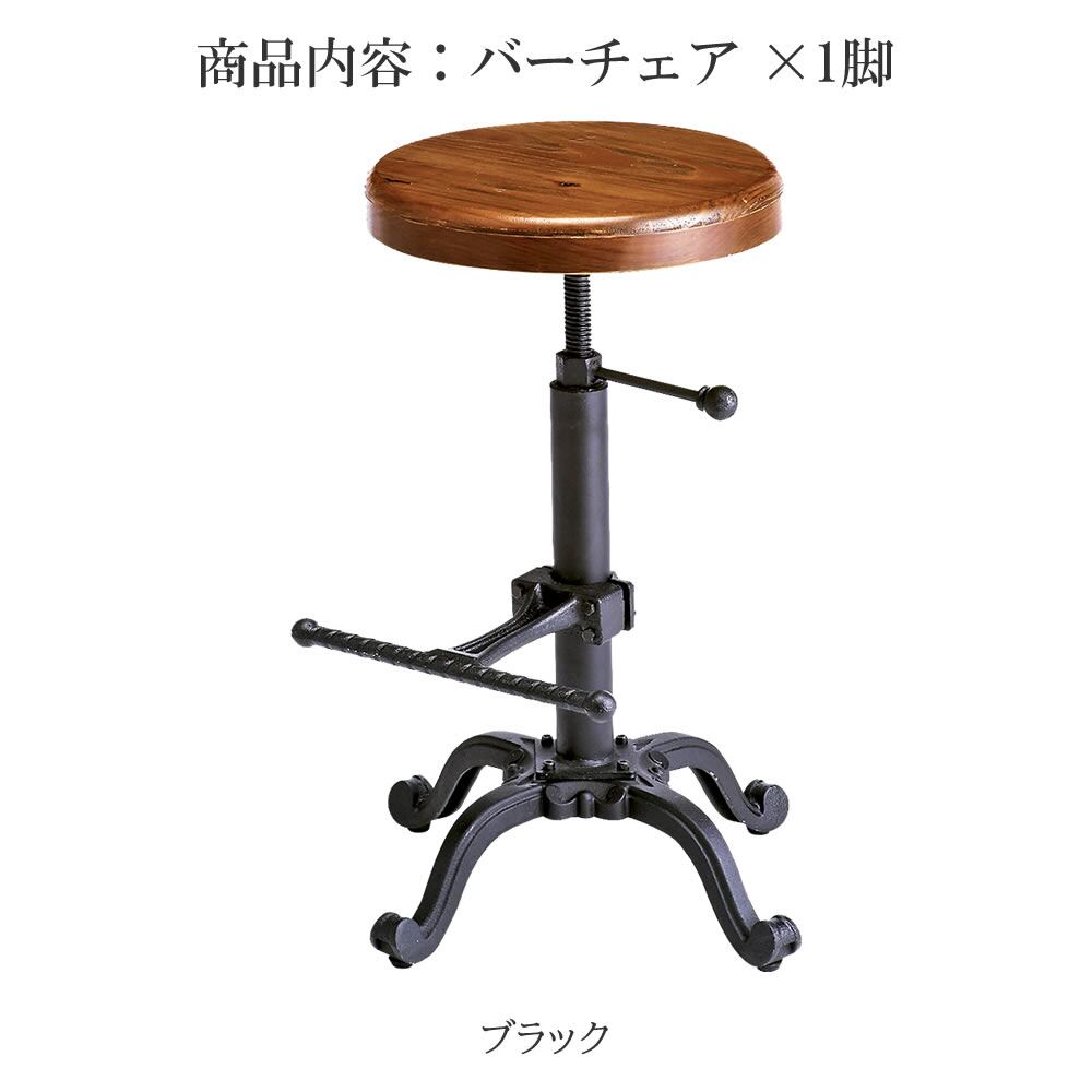 バーチェア 45cm幅 ブラック 円形チェア 丸形チェア 円型チェア 丸型チェア 円形スツール 丸型スツール 背もたれ無し 肘置き無し 肘掛け無し アームレスチェア アームレススツール おすすめ おしゃれ 北欧 モダン スタイリッシュ ヴィンテージ加工 ミッドセンチュリー 円型座面 昇降スツール 昇降チェア 昇降椅子 リビングチェア カフェチェア 足置き付き 高さ調整可能 円型座面 天然木 パイン材 スチールフレーム