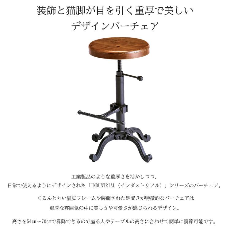 丸い猫脚フレームや、装飾の施された足置きが特徴的な45cm幅のバーチェアです。