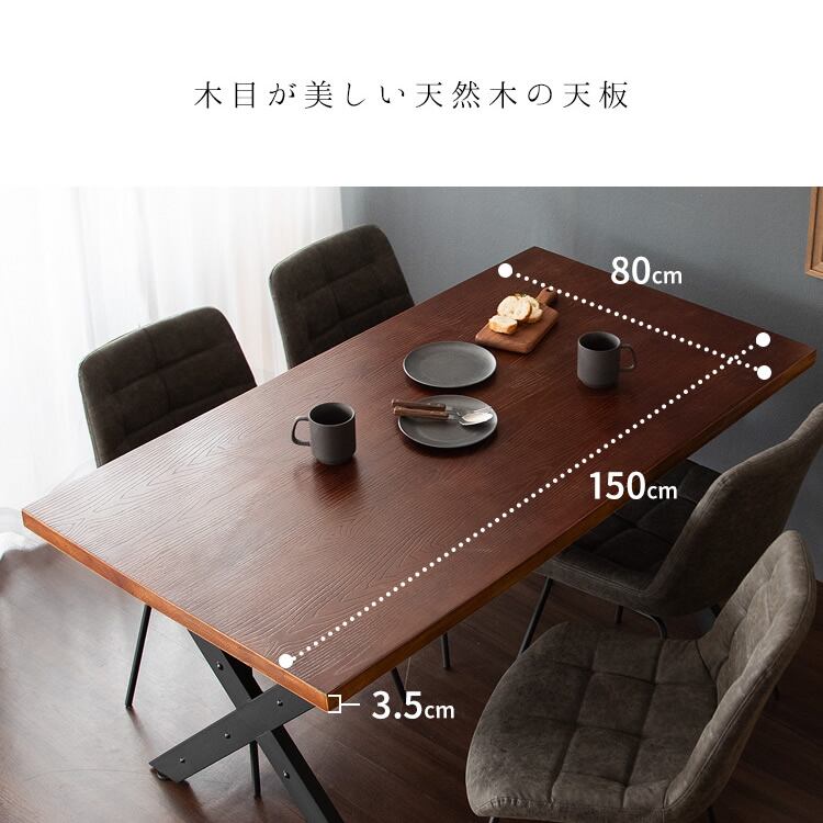 ヴィンテージ感のある天然木天板が目を惹く存在感のある150cm幅のダイニングテーブル1台単品です。